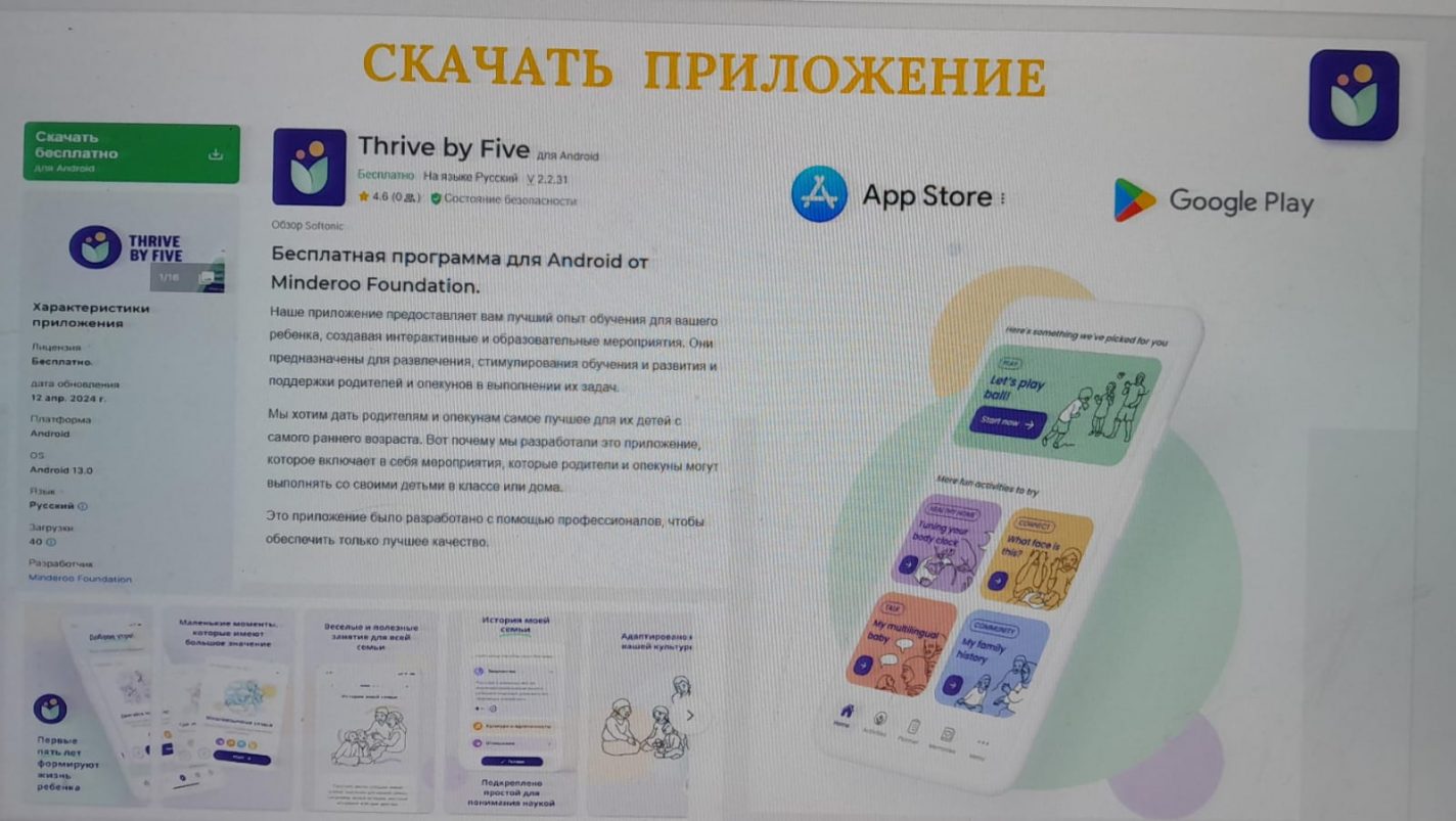 Құрметті ата-аналар!!! Ата-аналарға арналған "беске дейін үлгеру" мобильді қосымшасы, оның мақсаты ерте жастағы балалардың дамуындағы ата-аналардың құзыреттілігін арттыру болып табылады. Онда мәдениет және сәйкестілік, қауіпсіздік, тілдер, ойлау дағдылары, денсаулық және тамақтану, моторика, шығармашылық, қарым-қатынас, эмоциялар және т.б. сияқты бөлімдер бар. мектеп жасына дейінгі балаларды дамытудың барлық бағыттары .